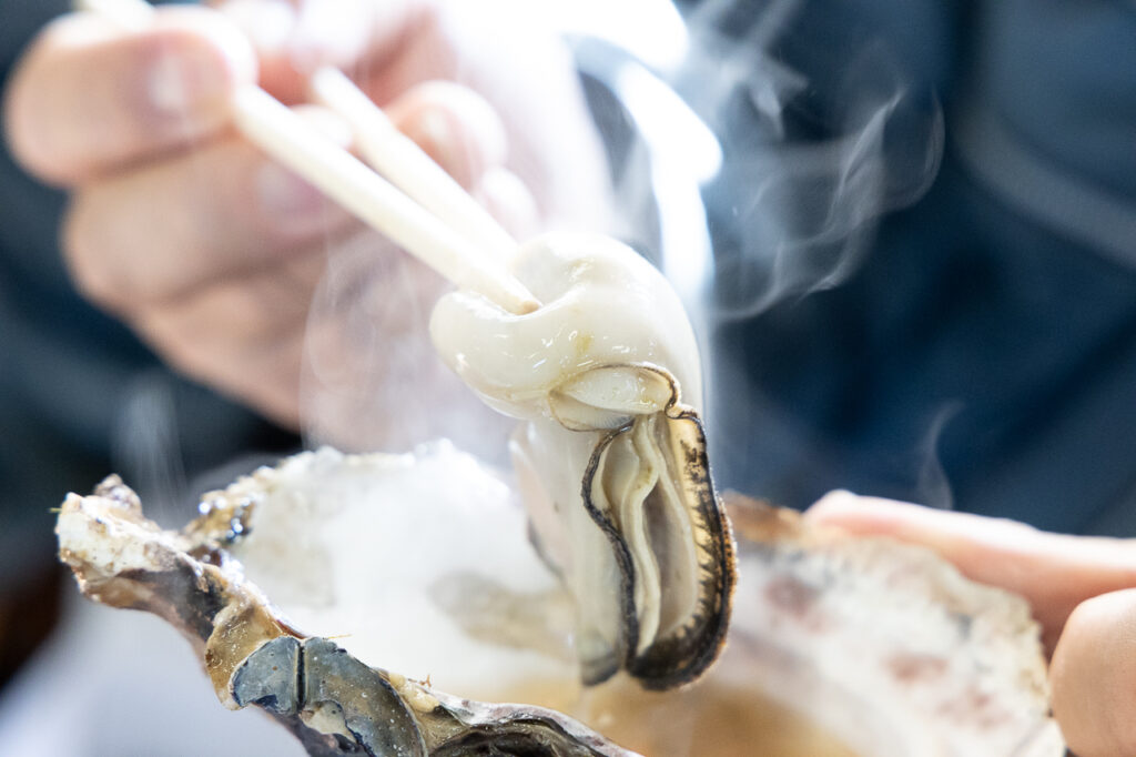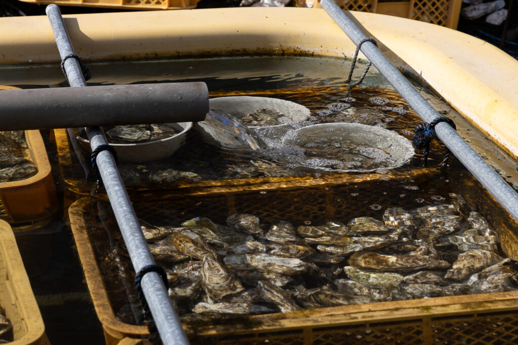 目の前の海から引いた海水につけているので、鮮度の高いカキが楽しめるんです。