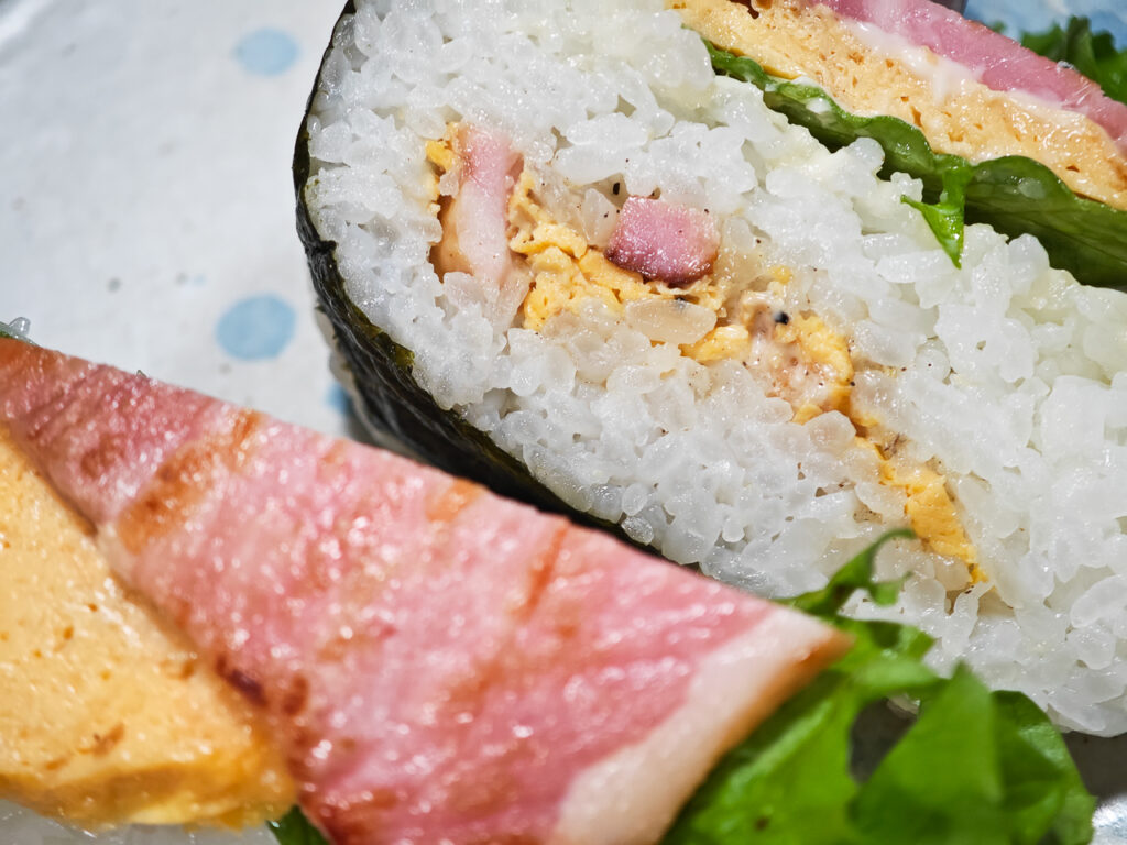 お店の看板メニューは、具沢山おにぎり「ベーコンと卵の夫婦漫才」。