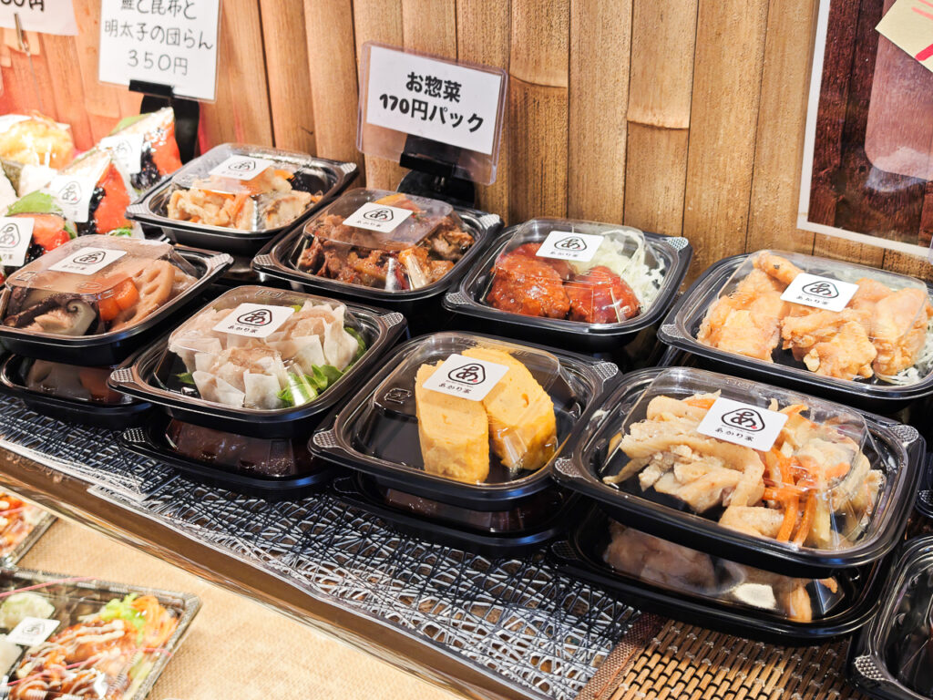 お惣菜メニューやお弁当も盛りだくさんで、ランチから夕飯のおかずまで揃っています。